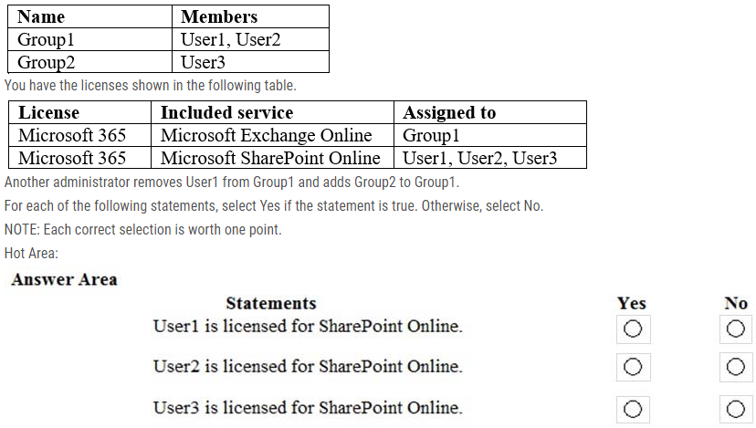 Your company has a Microsoft Office 365 subscription that contains the groups shown in the following table.