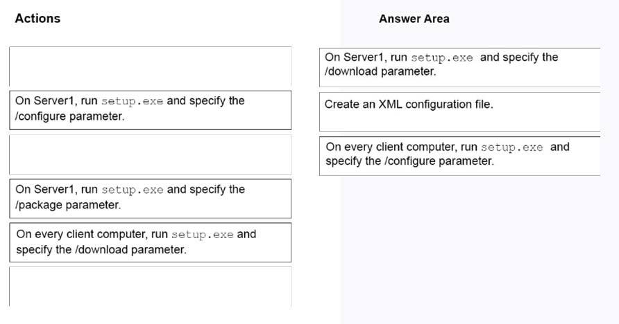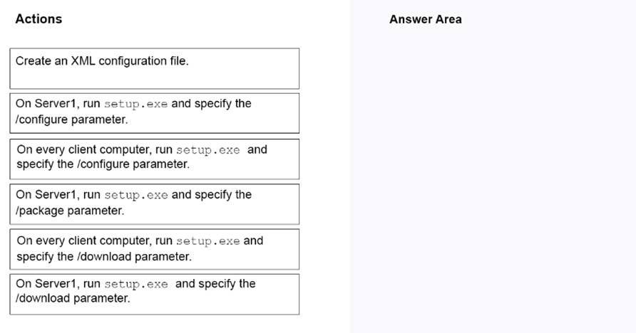 On Server1, you create a file share named Share1. You extract the Microsoft Office Deployment Tool (ODT) to Share1.