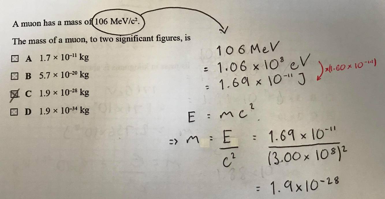 1) Convert MeV/c² or GeV/c² to eV (ignore /c²)