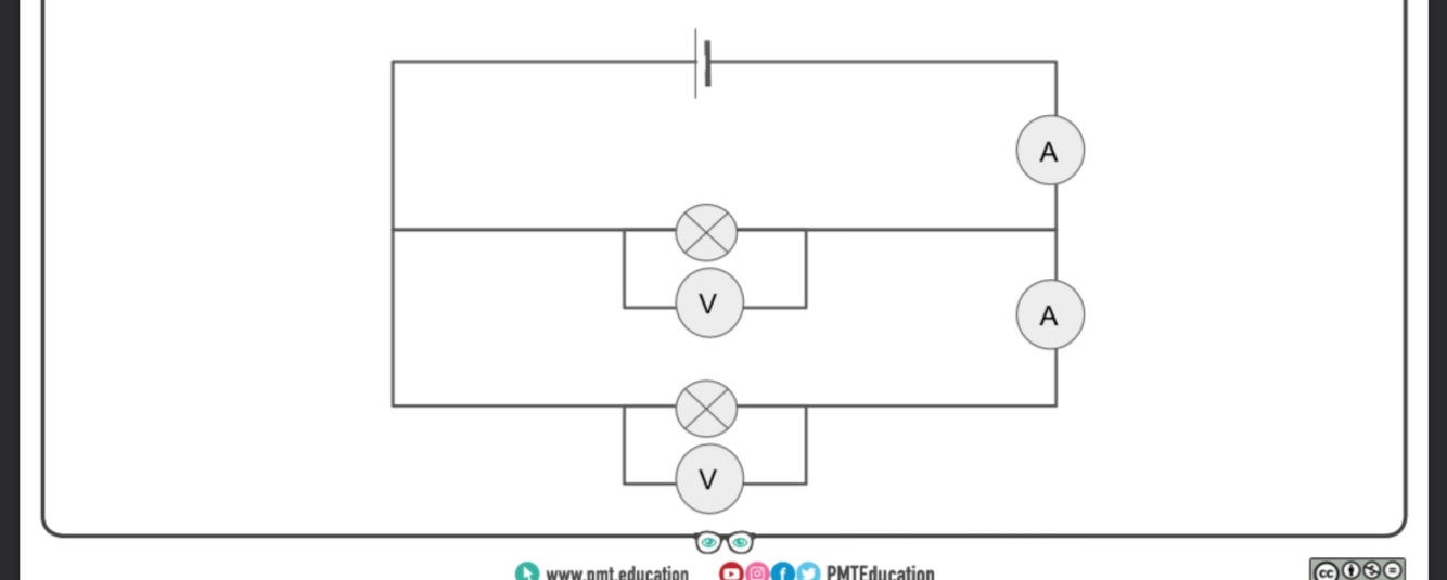 3) set up a second circuit with two lamps in parallel and once again record the potential difference and current values for increasing voltages