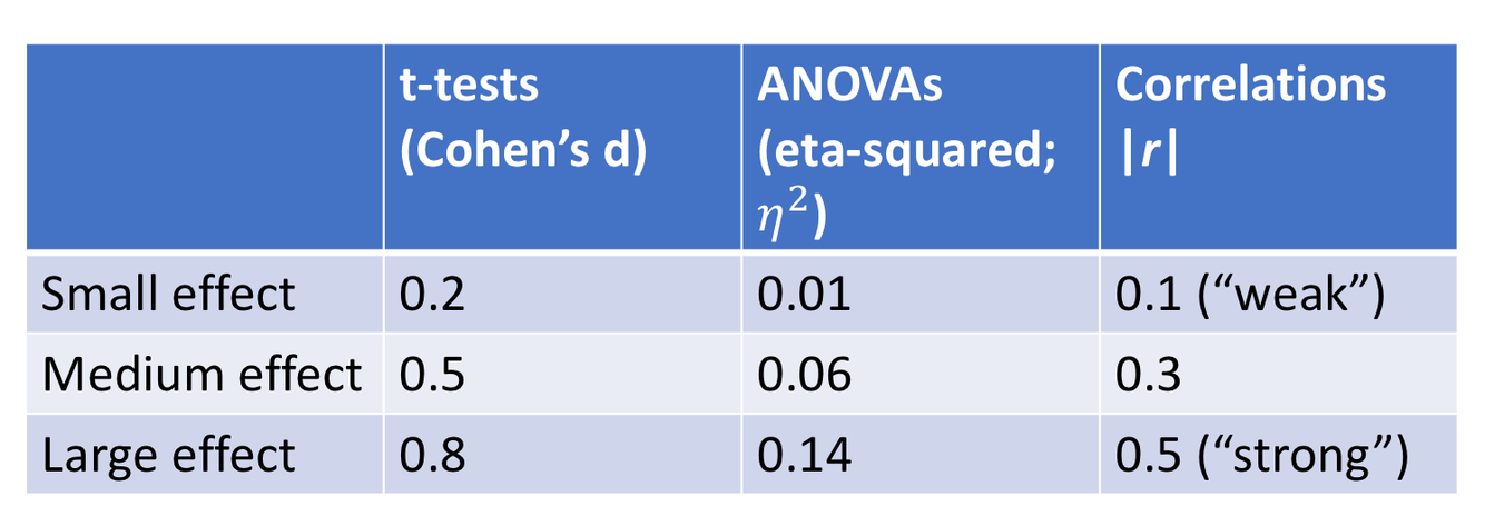 correlation r value effect size