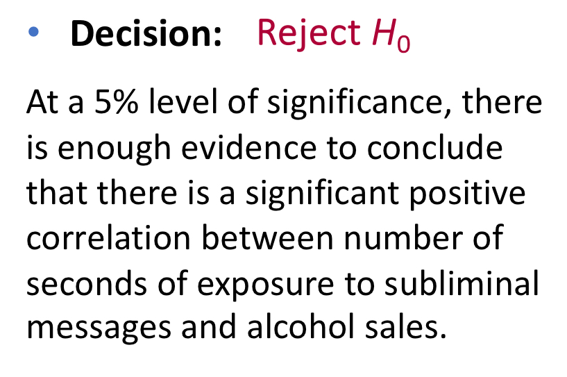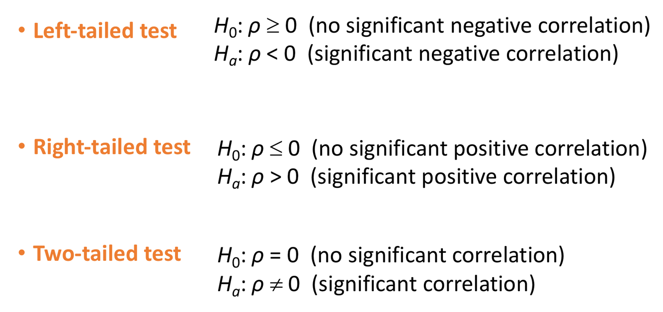Hypothesis testing for correlations H0 and Ha