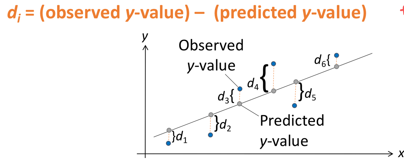 The difference between th eobserved y-value and the predicted y-value for a given x-value on a line