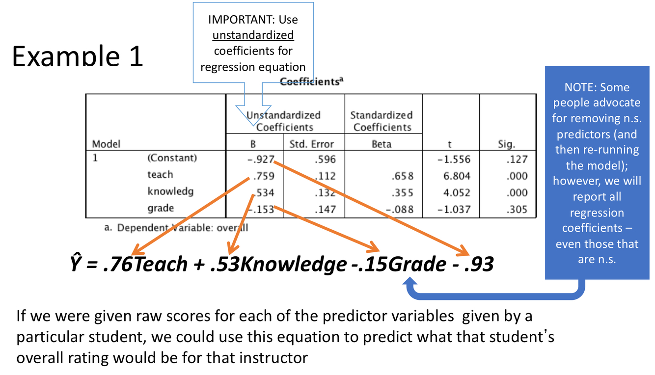 Use UNSTANDARDIZED COEFFICIENTS