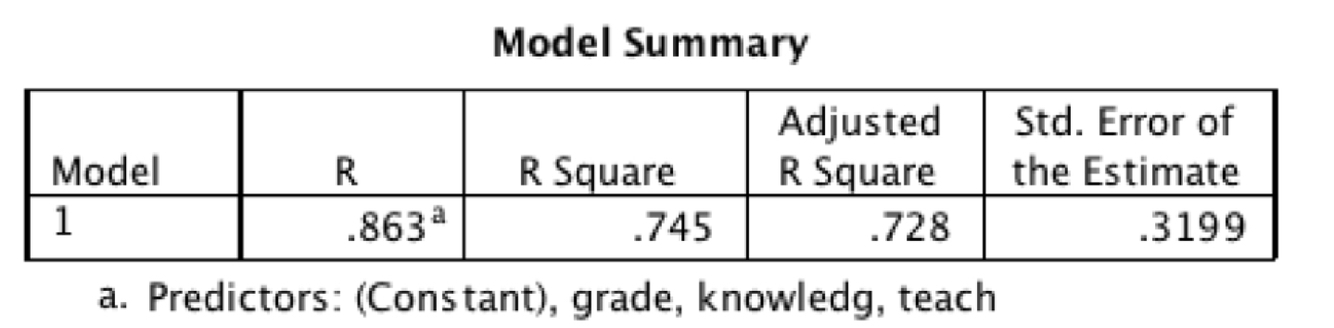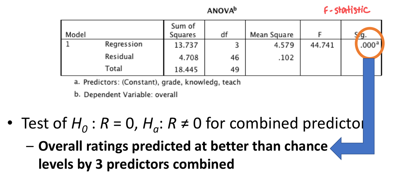 Running SPSS multiple regression anaylses to determine whether all 3 predictors combined can significantly predict overall rating above chance: