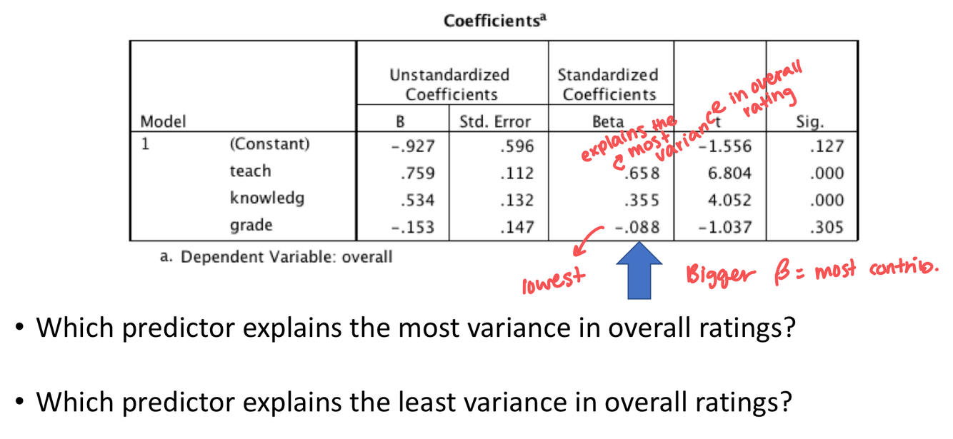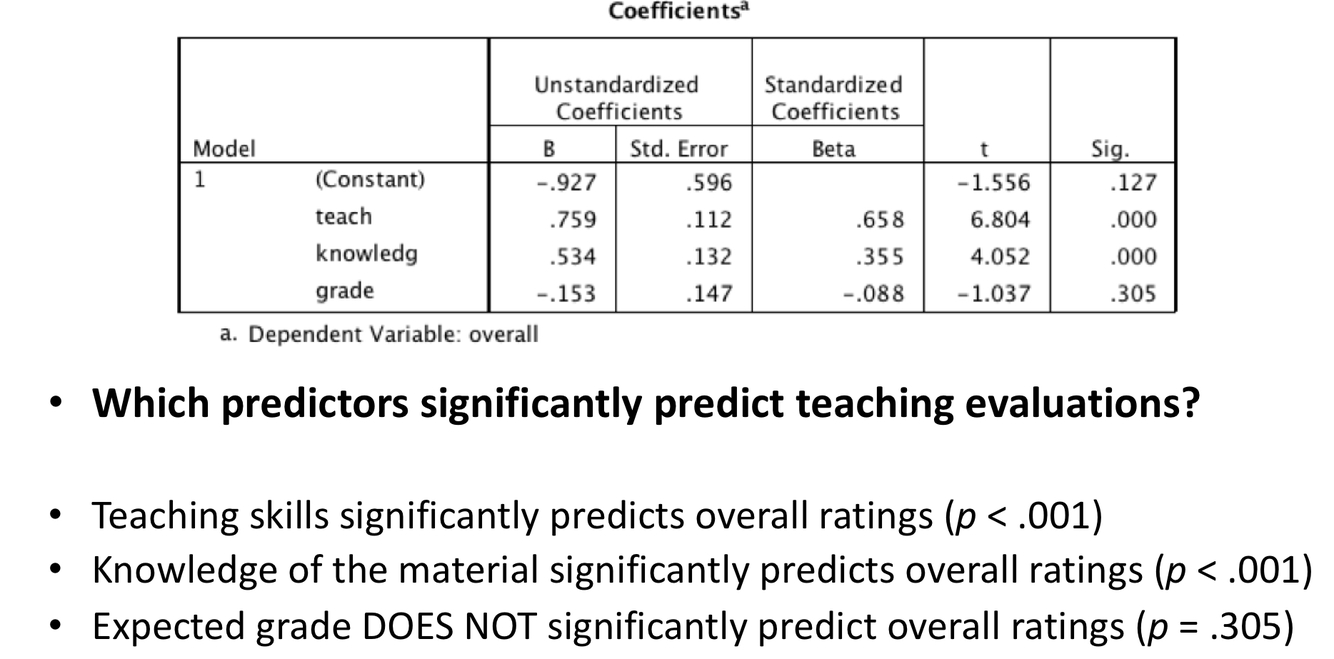 Sun SPSS multiple regression anaylses to determine whether each predictor variable significantly contributes to the prediction of overall rating on its own:
