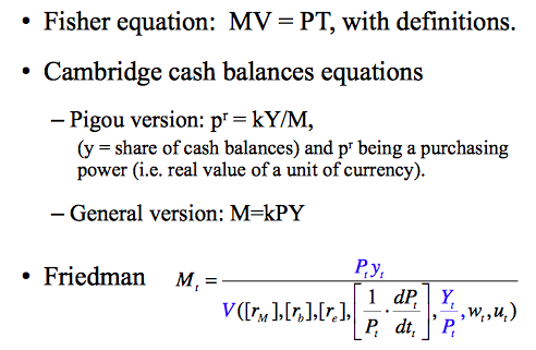 (ii) the Cambridge cash balances equation; and (iii) monetarism.