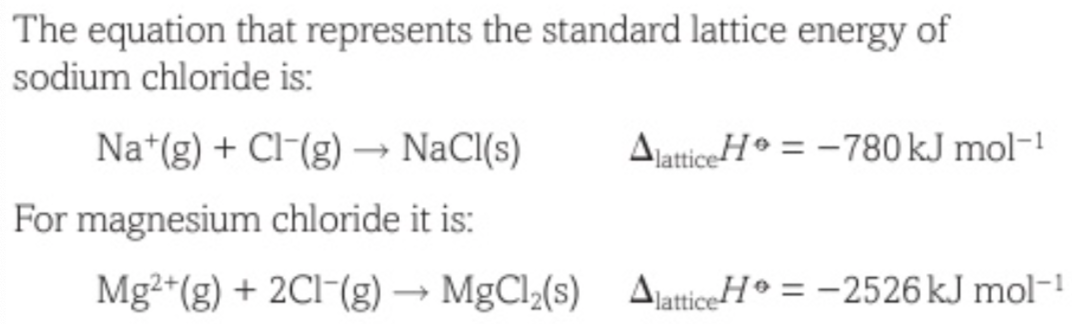 Lattice energy of magnesium chloride is much larger than that of sodium chloride.