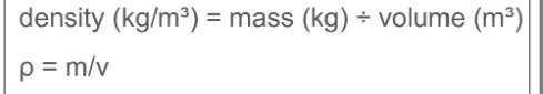 State the eqaution for density. Gvie appropriate units.