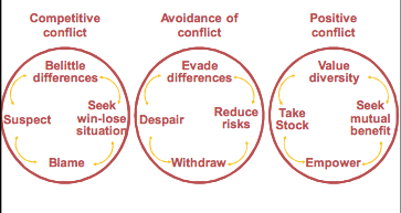 What model shows how super-ordinate goals can be emphasised to reduce dysfunctinal conflict?