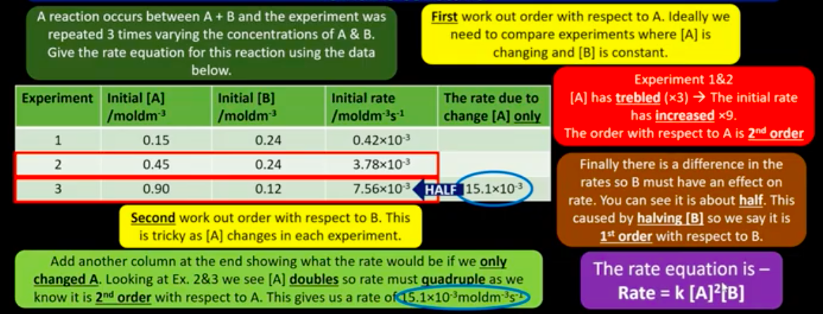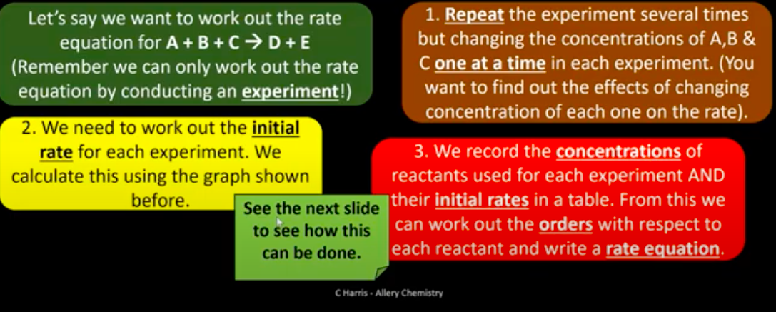 How is the rate equation determined experimentally for a reaction?