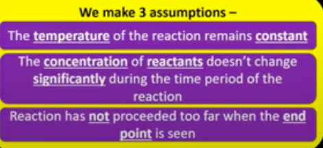 What 3 assumptions are made when finding the initial rate of a clock reaction?