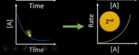 What are the concentration-time and rate-conc graph for a 2 order reactant?