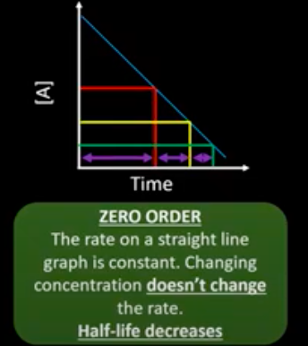 What happens to the half life of a zero order reactant?