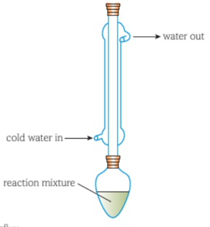 -To prevent this from happening, heat in a flask fitted with reflux condenser.