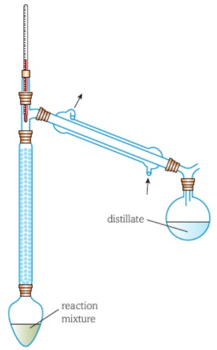 Uses same apparatus as simple distillation, but with a fractionating column filled with glass beads which acts as surfaces of which the vapour leaving the column can condense.
