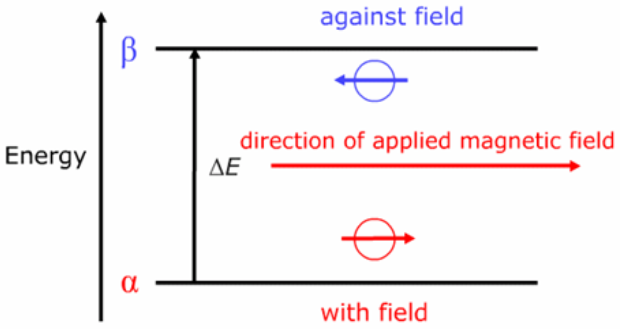 -Nuclei aligned against the magnetic field are in a higher energy state than nuclei aligned with a field