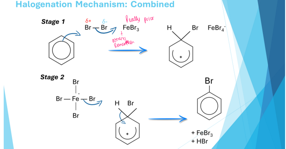 What is the mechanism for halogenation of Benzene