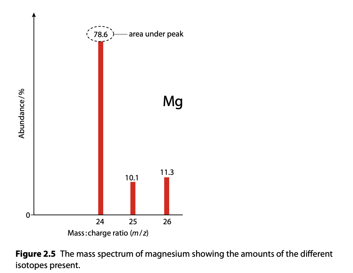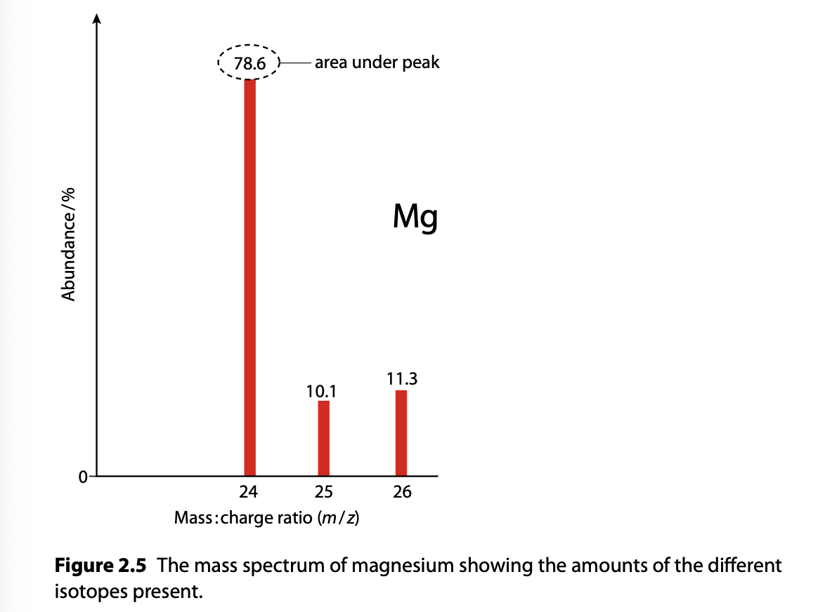 the height of each peak (more properly, the area under each peak) is proportional to the number of atoms of this isotope in the sample tested