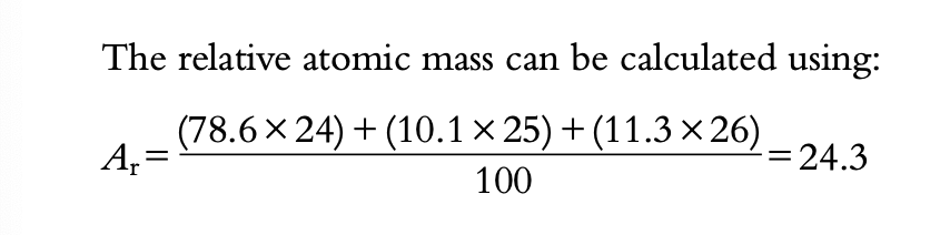 Because of the different isotopes present, it is most convenient to quote an average mass for an atom – this is the relative atomic mass (Ar)
