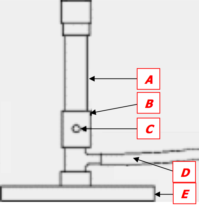 Name and spell the 5 parts of the Bunsen Burner shown in the diagram.