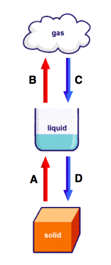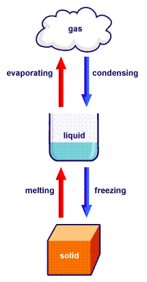 Changes of state e.g. Ice melting or water boiling/freezing or steaming condensing