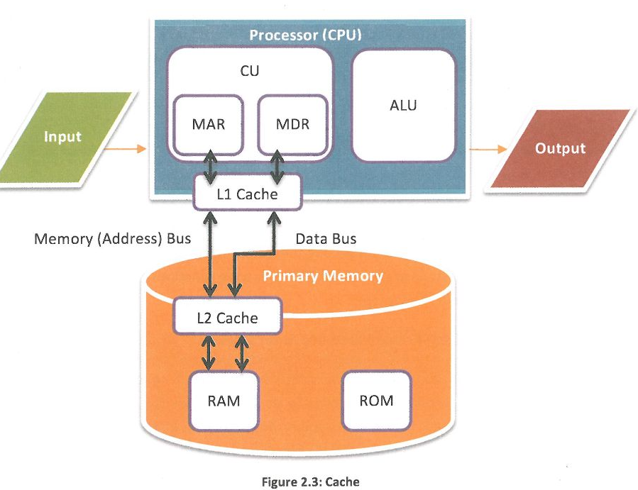 Cache memory is closer to the CPU than RAM.