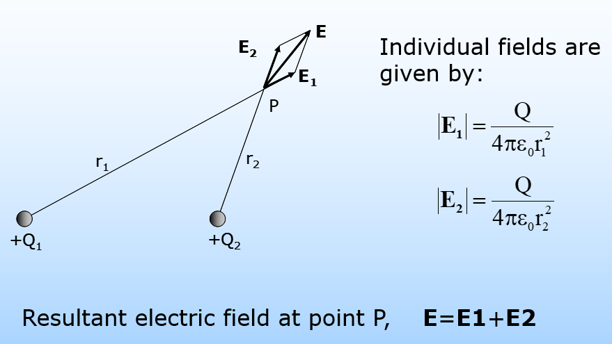 The E field at a point in space is the force acting on a unit positive charge placed at that point.