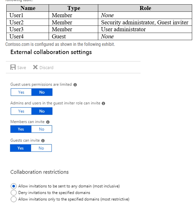 You have a Microsoft 365 subscription and a Microsoft Azure Active Directory (Azure AD) tenant named contoso.com. Contoso.com contains the users shown in the following table.
