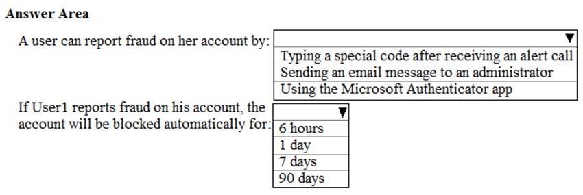 You enable multi-factor authentication for contoso.com and configure the following two fraud alert settings: