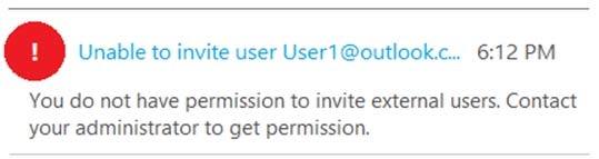 An administrator named Admin1 attempts to create a user account for the external user and receives the error message shown in the following exhibit.