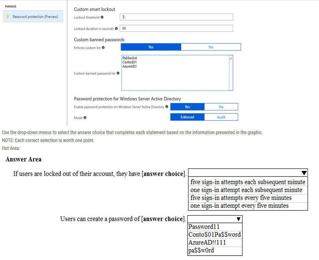 Solution: Implement password hash synchronization and configure password protection in the Azure AD tenant.