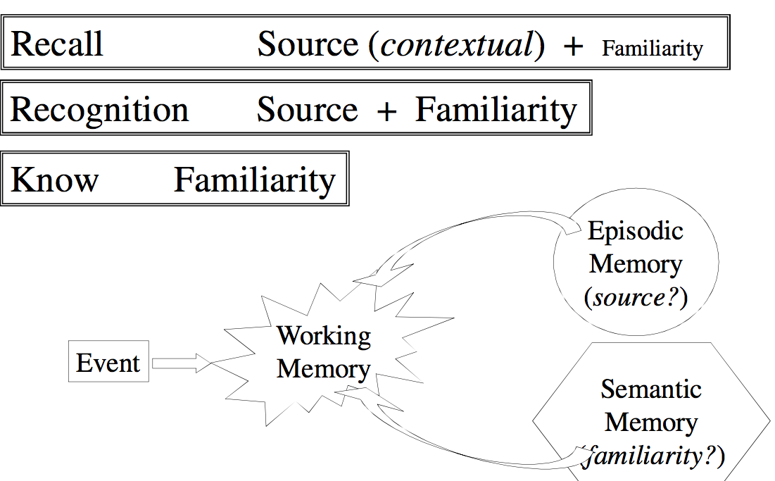 familiarity involves semantic and episodic but mainly episodic
