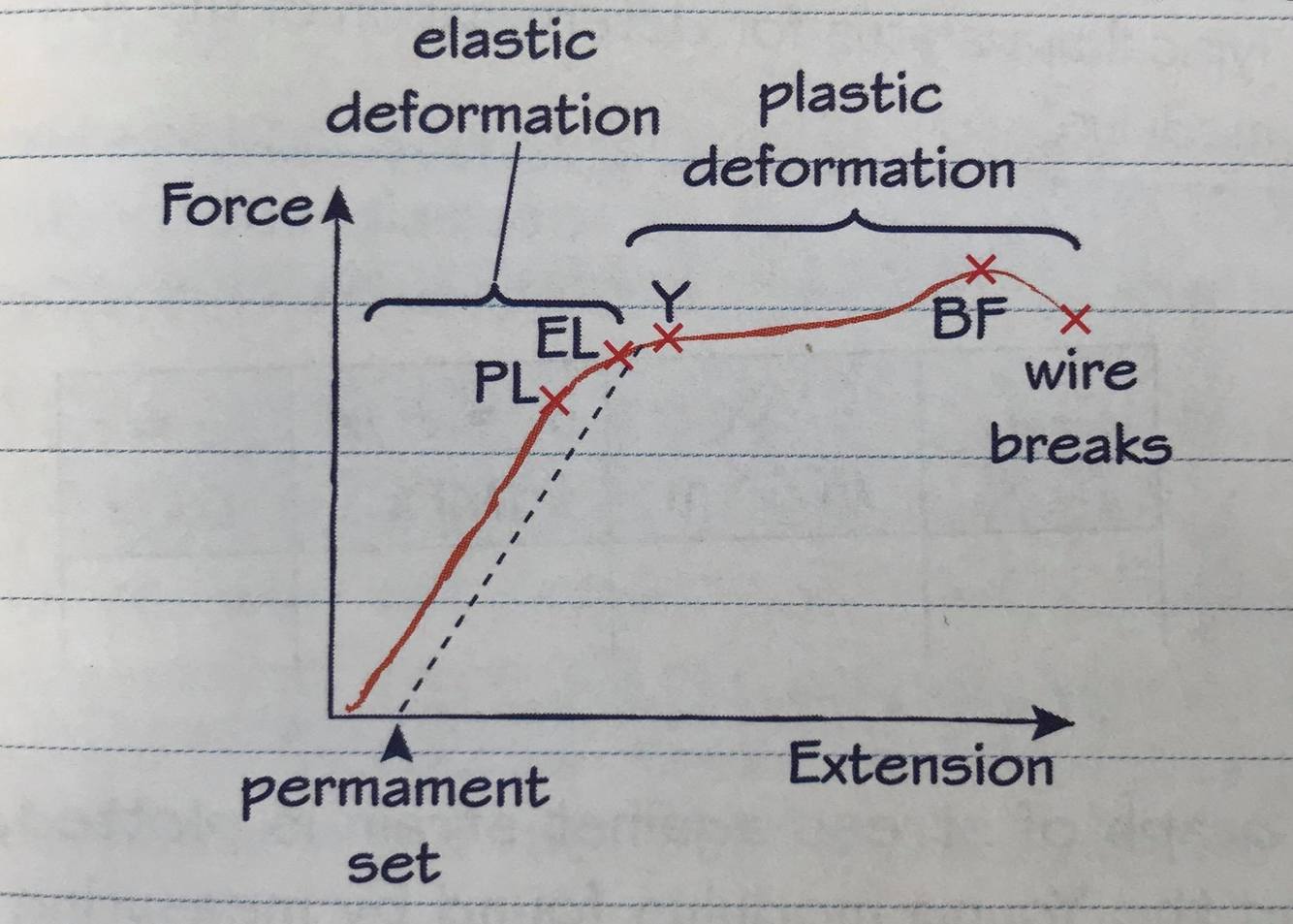 When plastic deformation begins and the extension quickly increases as force is increased.