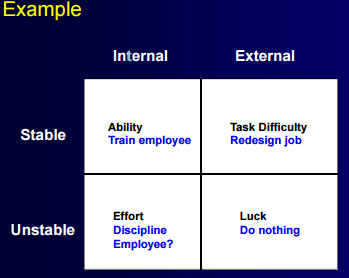 Taking credit for our own fails (internal attribution) but blaming our failures on factors beyond our control (external attribution)
