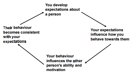 Explain the self furfilling prophecy. Show the diagram.