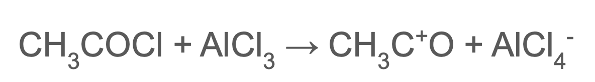AlCl3 initially reacts with an acyl chloride to produce a reactive carbocation intermediate and AlCl -. At the end of 4