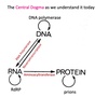 [DNA]==transcription==>[RNA]==translation==>[amino acid chain]==folding==>[protein]