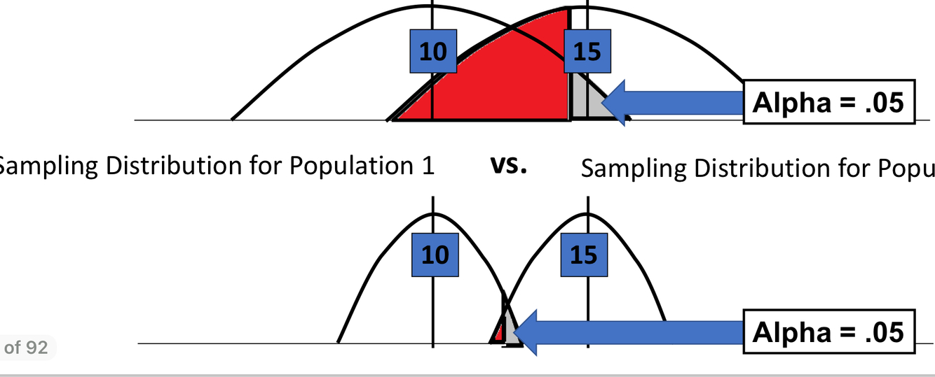 Why does larger sample make distribution narrower when talking about impact of sample size on power