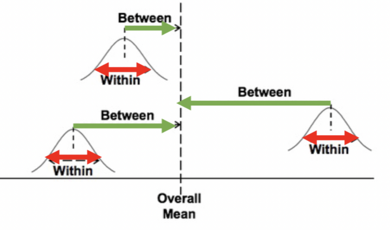 In anova, bigger the green arrow, smaller the red the more sure we are that