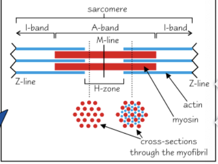 zone where there is only myosin the actin doesn’t cross over unless contraction is taking place