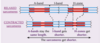 as one muscle contracts and shortens the other relaxes and lengthens