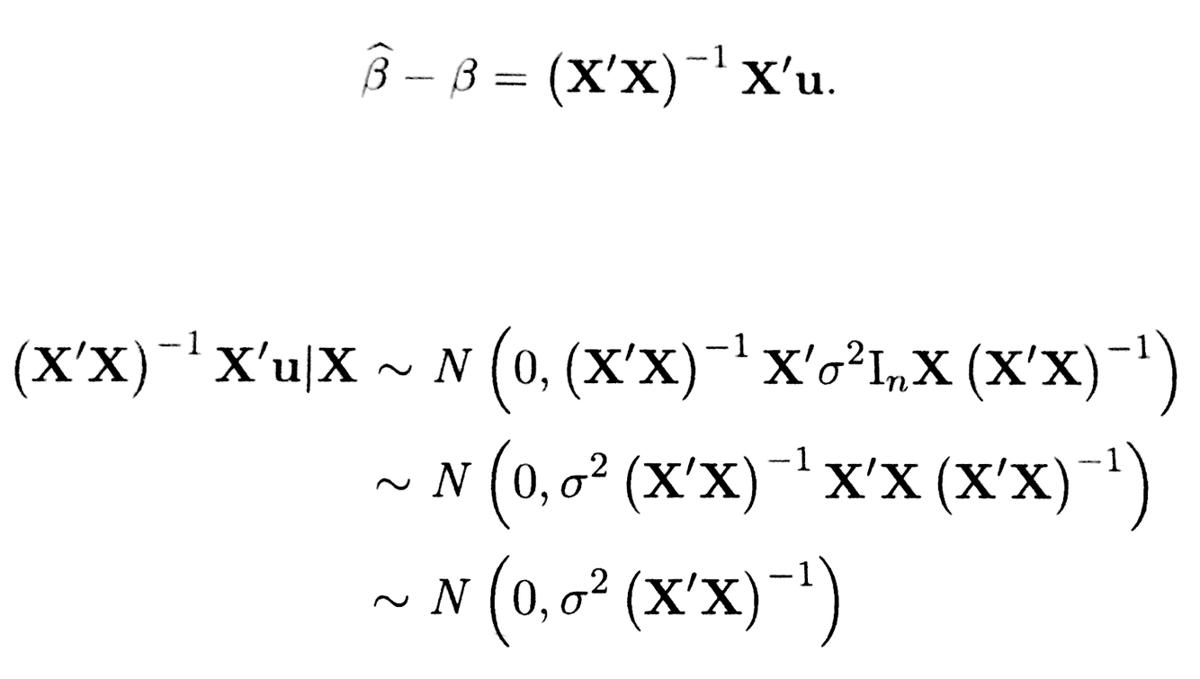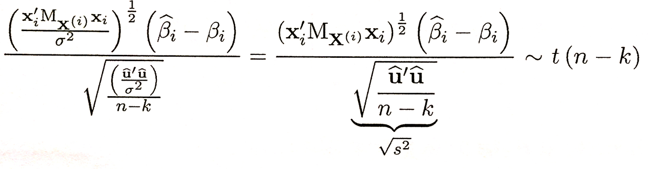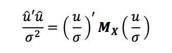 As the left and right parts of the second equality are distributed on the normal distribution, this can be modelled by a chi-squared distribution with n-k degrees of freedom.