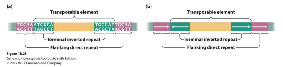 Are part of the transposable element, they direct the transposase. They are short DNA sequences that are repeated at both ends of a transposable element, but are oriented in opposite directions, such that the sequence at one end is the reverse complement of the sequence at the other end.