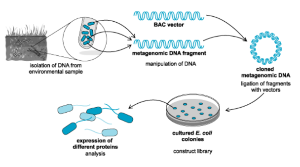 How is Metagenomics done (by cloning and expression)?