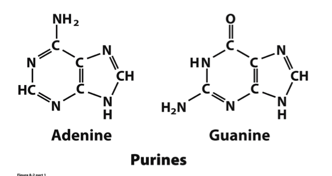 Purines (adenine & guanine) => lrg, bicyclic