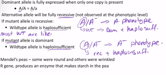 - The alternative allele will be fully recessive (not observed at the phenotypic level)