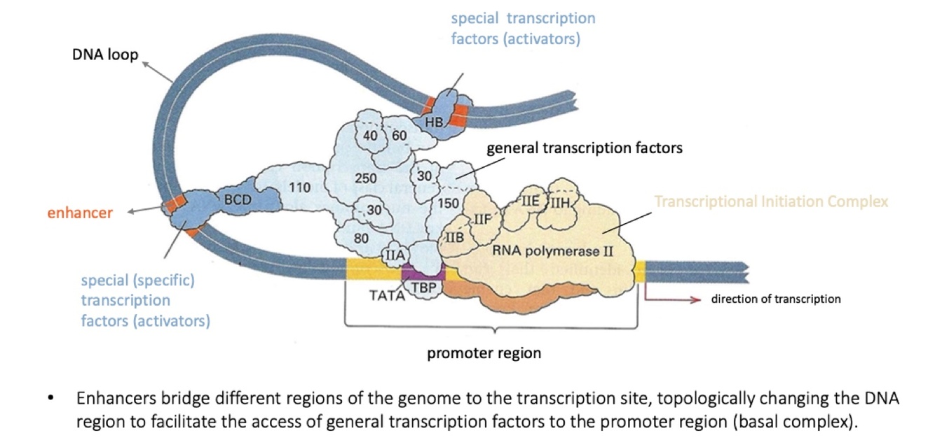 Enhancers regulate promoter region through loops in chromatin