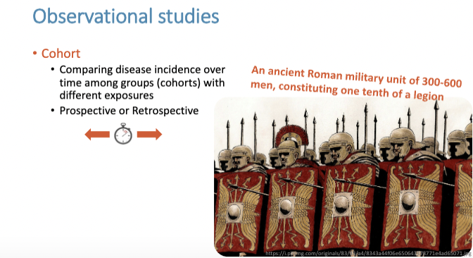 Cohort = best amount of info (almost a control trial - due to different arms and groups being monitored over time)