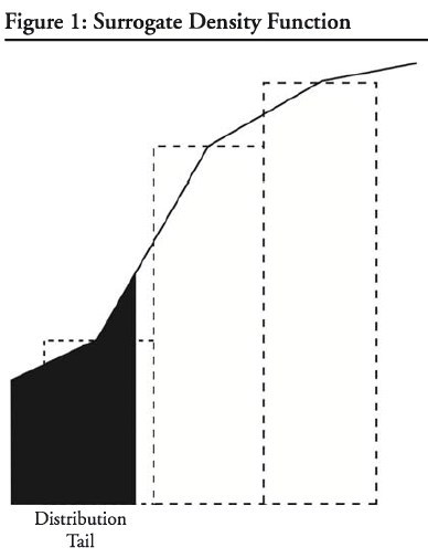 Under expected shortfall estimation, the tail region is divided into equal probability slices and then multiplied by the corresponding quantiles. Under the more general coherent risk measure, the entire distribution is divided into equal probability slices weighted by the more general risk aversion (weighting) function.